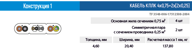 Кабель КПЛК 4х0,75+2х(2х0,25) предназначен для диспетчеризации лифтов, организации системы видеонаблюдения в кабине лифта и контроля управлением доступом посредством передачи сигнала по скрученным парам в составе плоского лифтового кабеля.