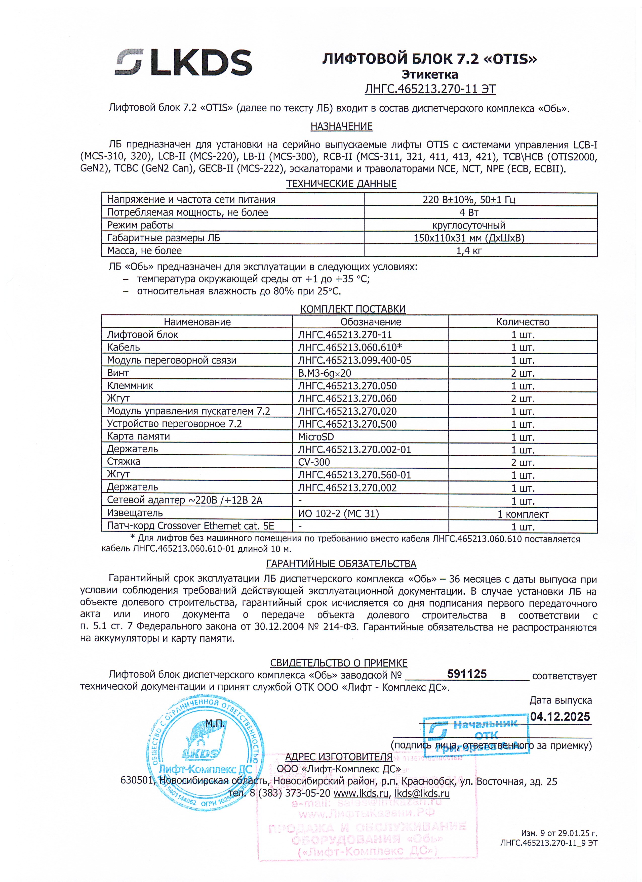 | Лифтовой блок | ЛНГС.465213.270-11 | 1 шт. |