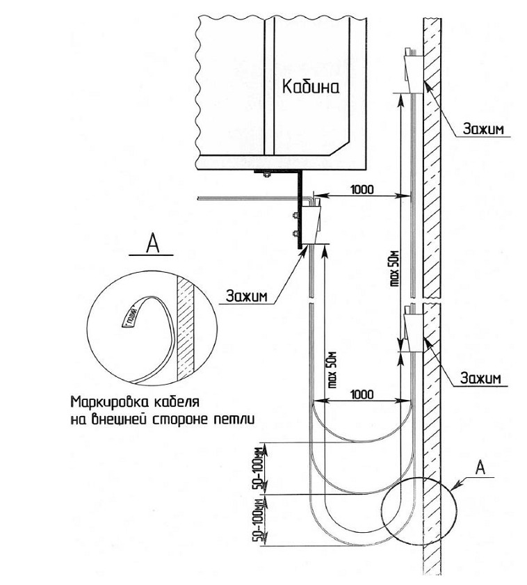 Как правило, устанавливают по 2-3 зажима в одну лифтовую шахту в зависимости от высоты шахты (см. инструкцию):