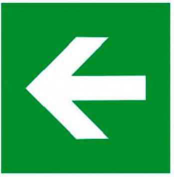 Знак "Направление движения" применяется для обозначения направления движения к пожаробезопасной зоне или к месту сбора. Диапазон размещения - от 1,7 до 2,2 м. (см. п.6.2.1.11 ГОСТ Р 51671-2020 Средства связи и информации технические общего пользования, доступные для инвалидов).